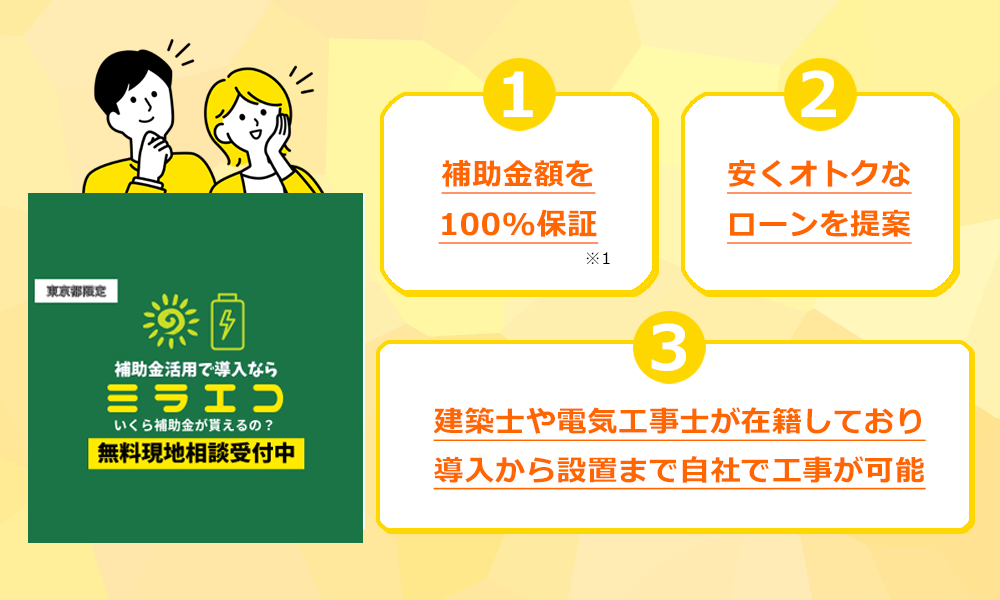 ミラエコのスタッフが提示した補助金額が、実際には補助されない場合、なんとミラエコがその金額を負担します!